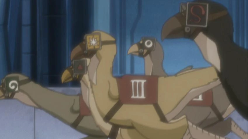 Domesticated racing birds also appear in the series. Walker Palace maintains a stable of the birds, and hold regular races which customers are allowed to place bets on. These birds wear stylized blinders.